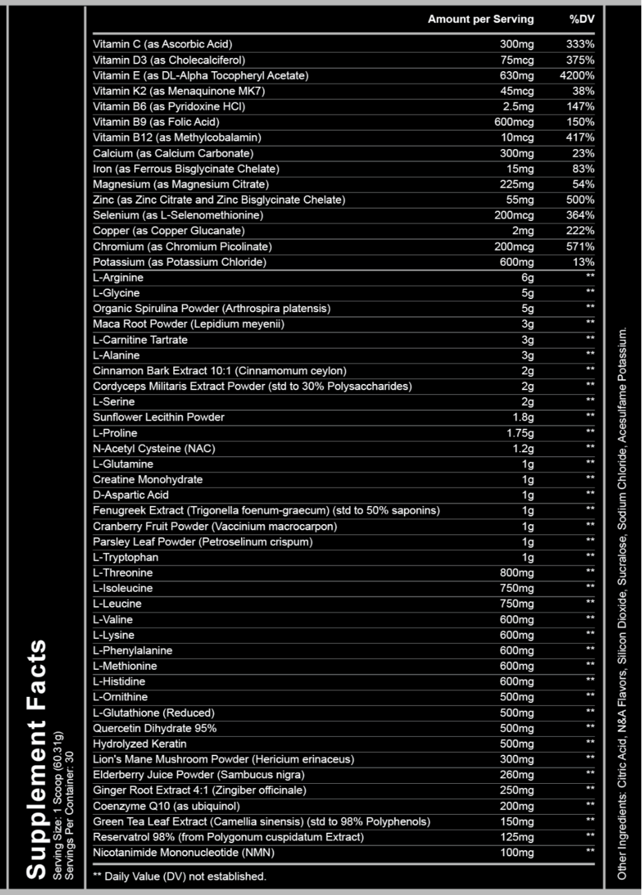 70+ ingredients at upper daily limits rebuilding your baseline nutrition from the ground up. This is what moves the needle on testosterone, and energy.